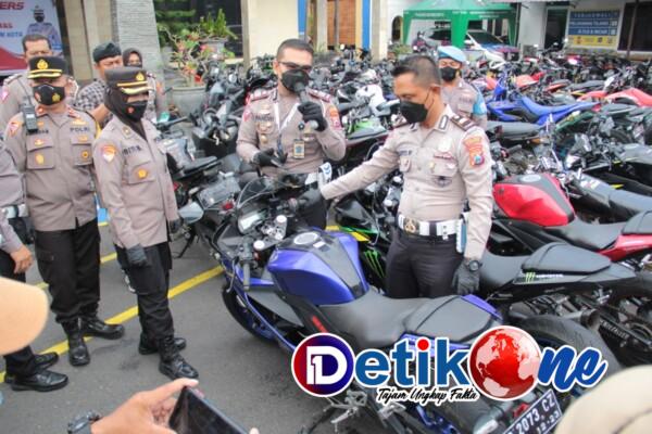 Kota Kediri, detik1.com – Satlantas Polres Kediri Kota mengamankan 153 unit kendaraan roda dua. Ratusan motor tersebut terjaring razia karena membuat gaduh dengan knalpot brongnya.